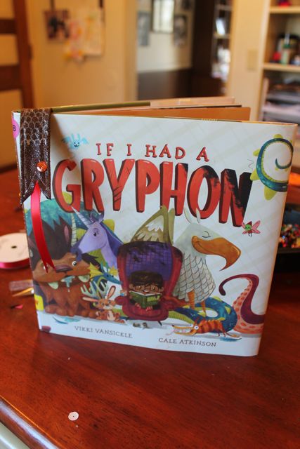 If I Had a Gryphon and noticed that the girl has the coolest bookmark hanging over the edge of her book of mythological creatures.