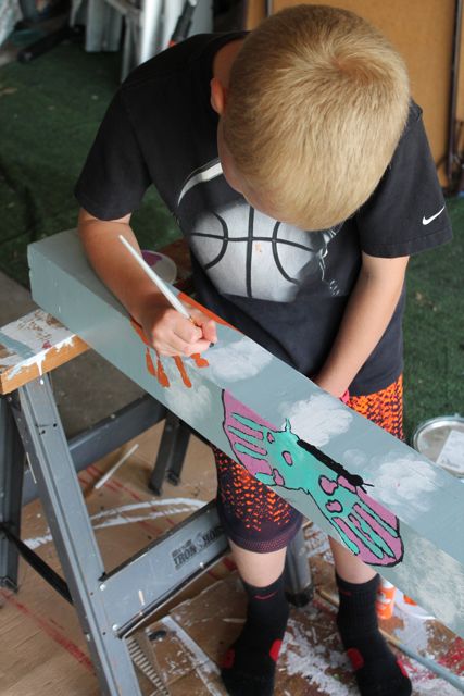 I let the paint dry overnight and then I sprayed a layer of clear acrylic on top to protect their art.