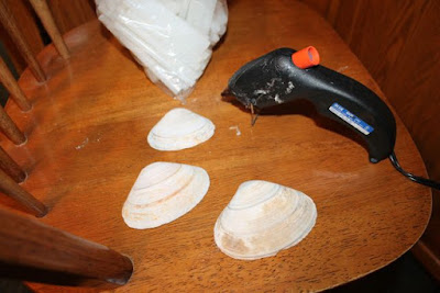 | First, we selected a small, a medium, and a large sized shell. I couldn't find instructions on how to make the ornaments. I decided to try hot glue. Thankfully, it worked great! |
